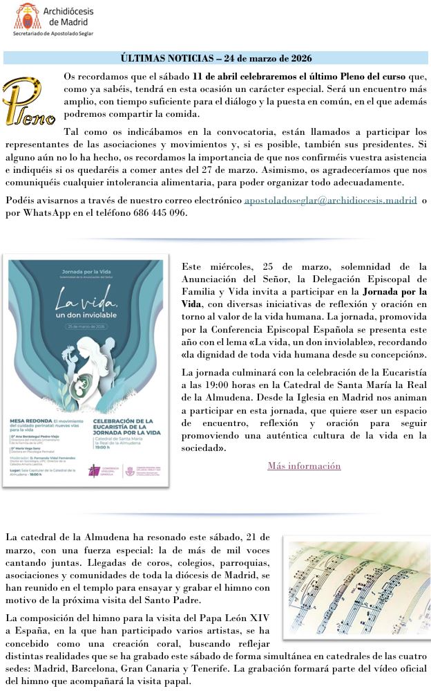 Arzobispado: 914 546 400 - Secretariado Apostolado Seglar: 914 546 421